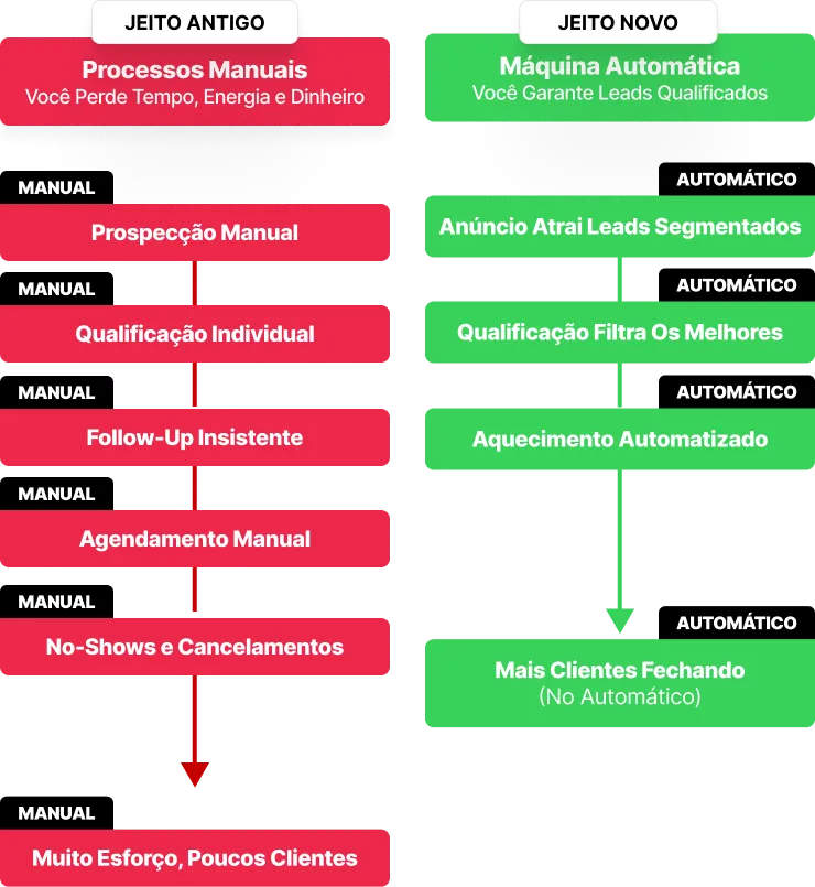 Com esse método, garantimos clientes prontos para comprar todos os dias através de um sistema automatizado de atração segmentada, qualificação automática e conversão máxima.